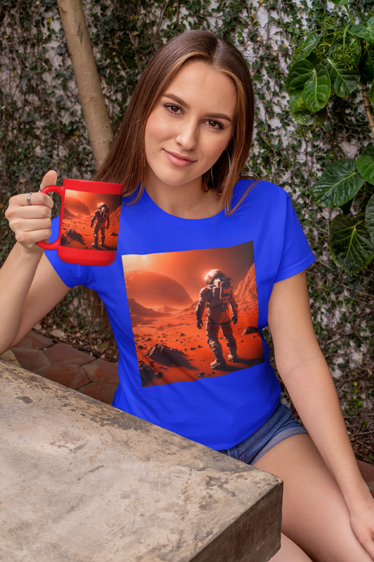 Embark on a cosmic journey with our vibrant AI Artwork featuring an astronaut exploring the red martian landscape. Whether your a sci-fi aficionado, a space enthusiast or simply someone who loves to dance under the stars, our Mars mission collection is tailored just for you.